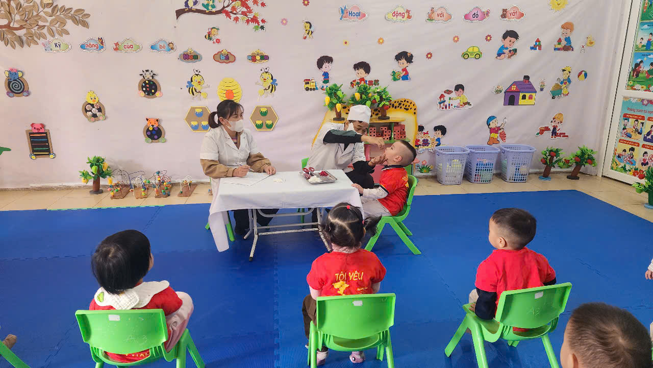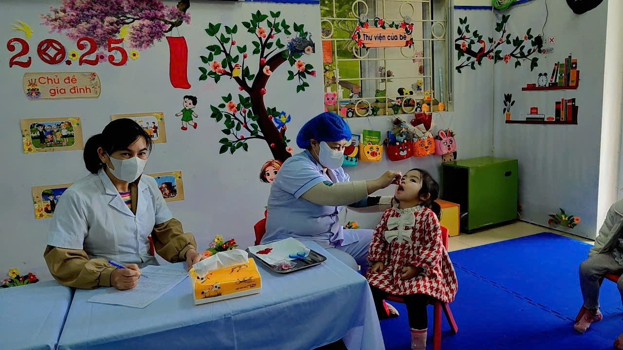 Phối hợp với trạm y tế phường Điện Biên Phủ cho trẻ uống Vitamin A và thuốc tẩy giun đợt II năm 2025
