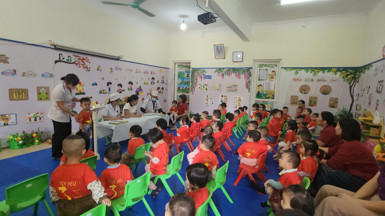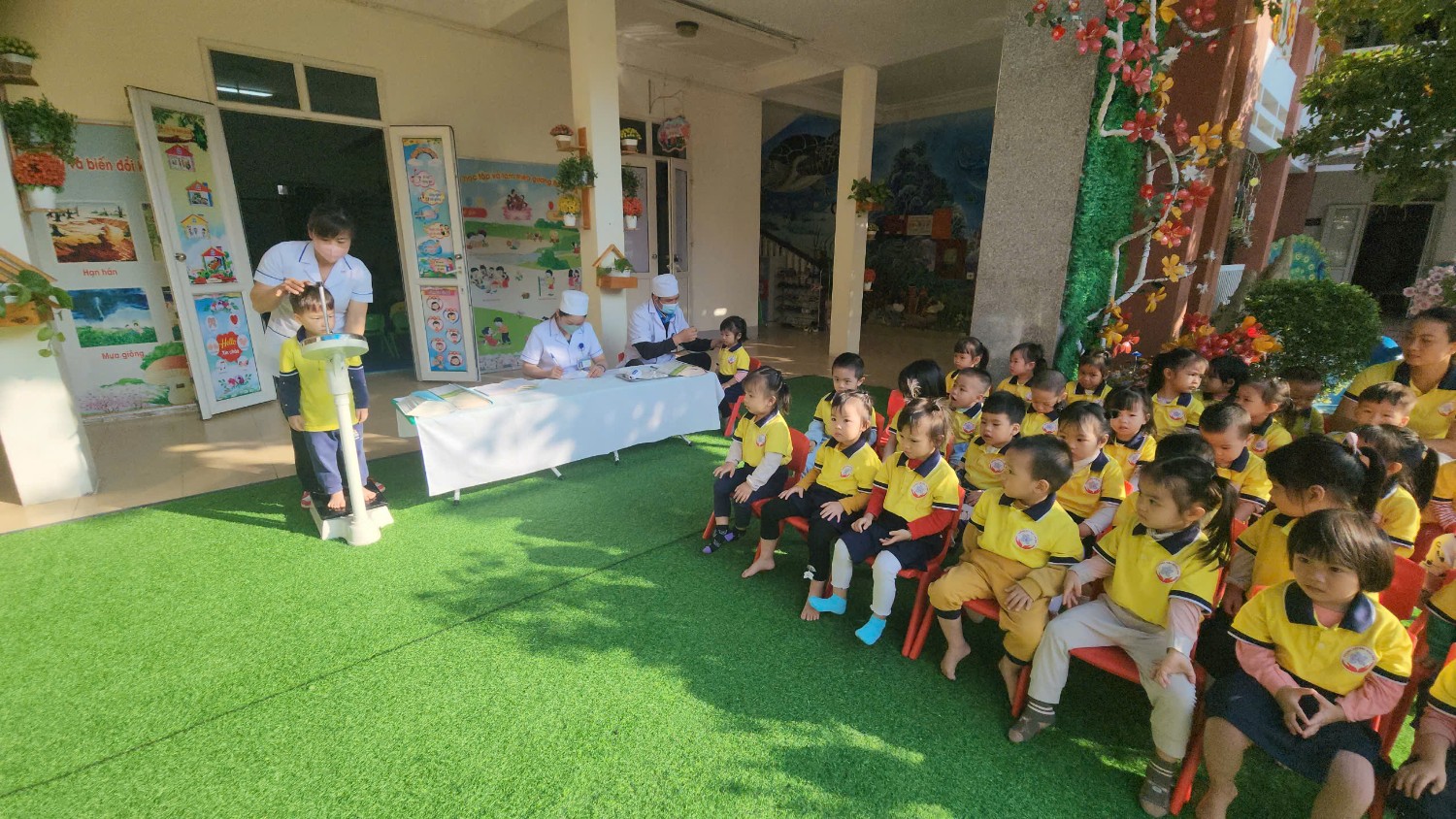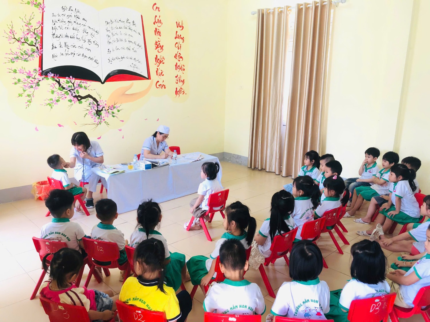 Trường Mầm non Hoa Ban phối hợp với trạm Y Tế phường Mường Thanh khám sức khỏe cho trẻ năm học 2024-2025