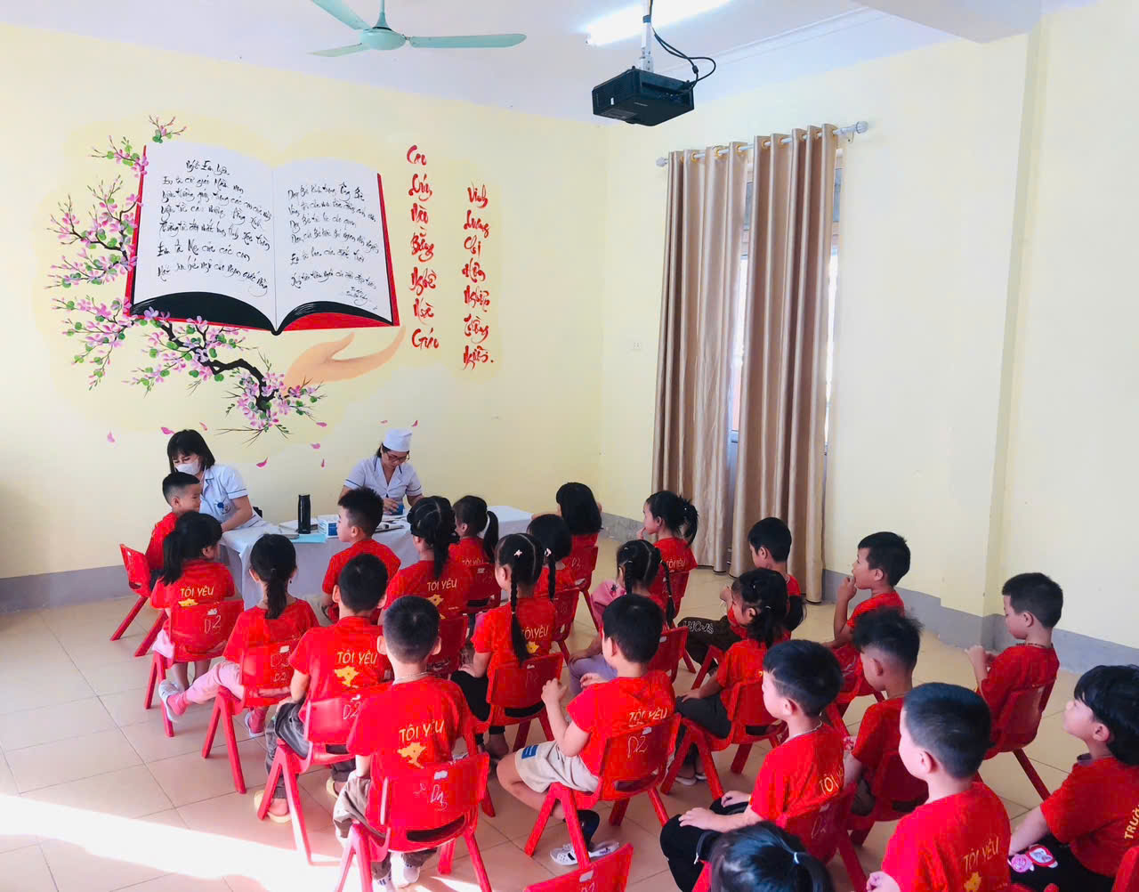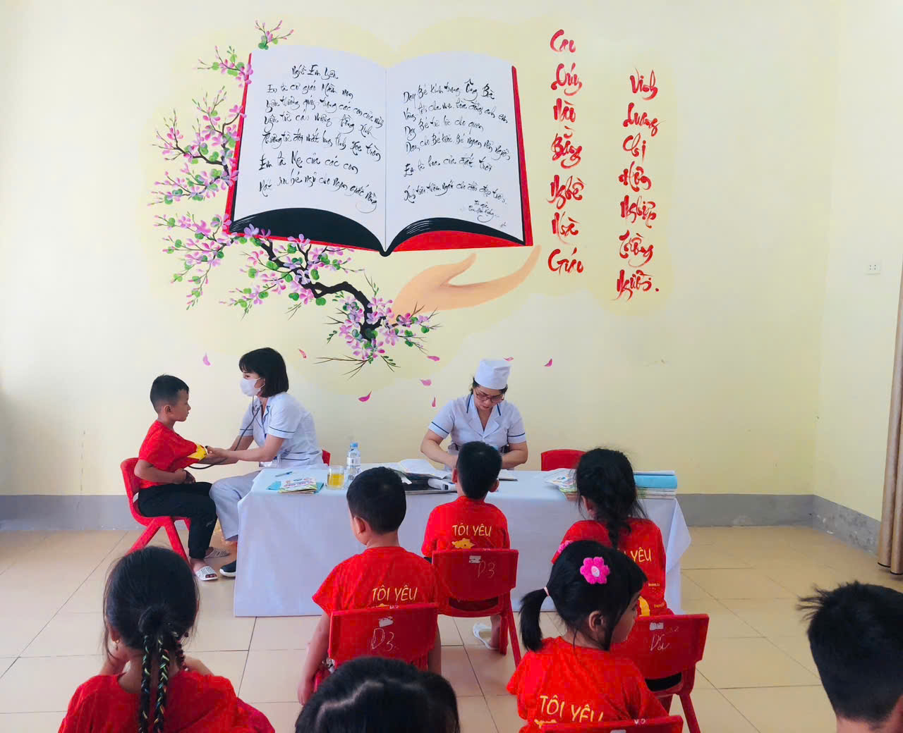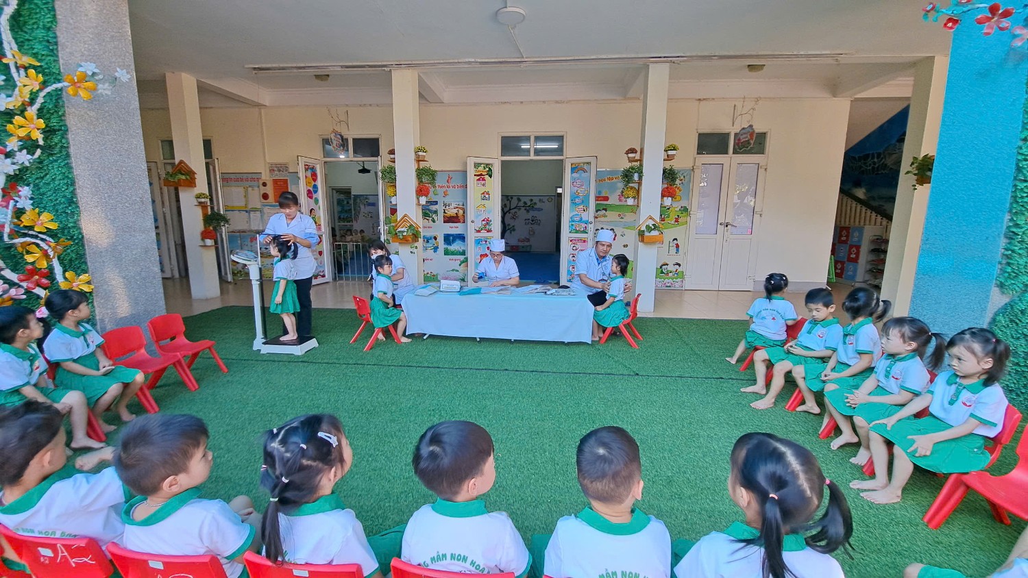 Trường Mầm non Hoa Ban phối hợp với trạm Y Tế phường Mường Thanh khám sức khỏe cho trẻ năm học 2024-2025