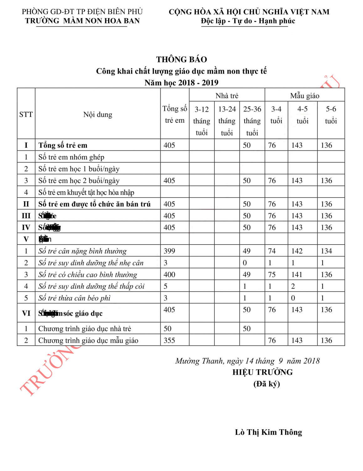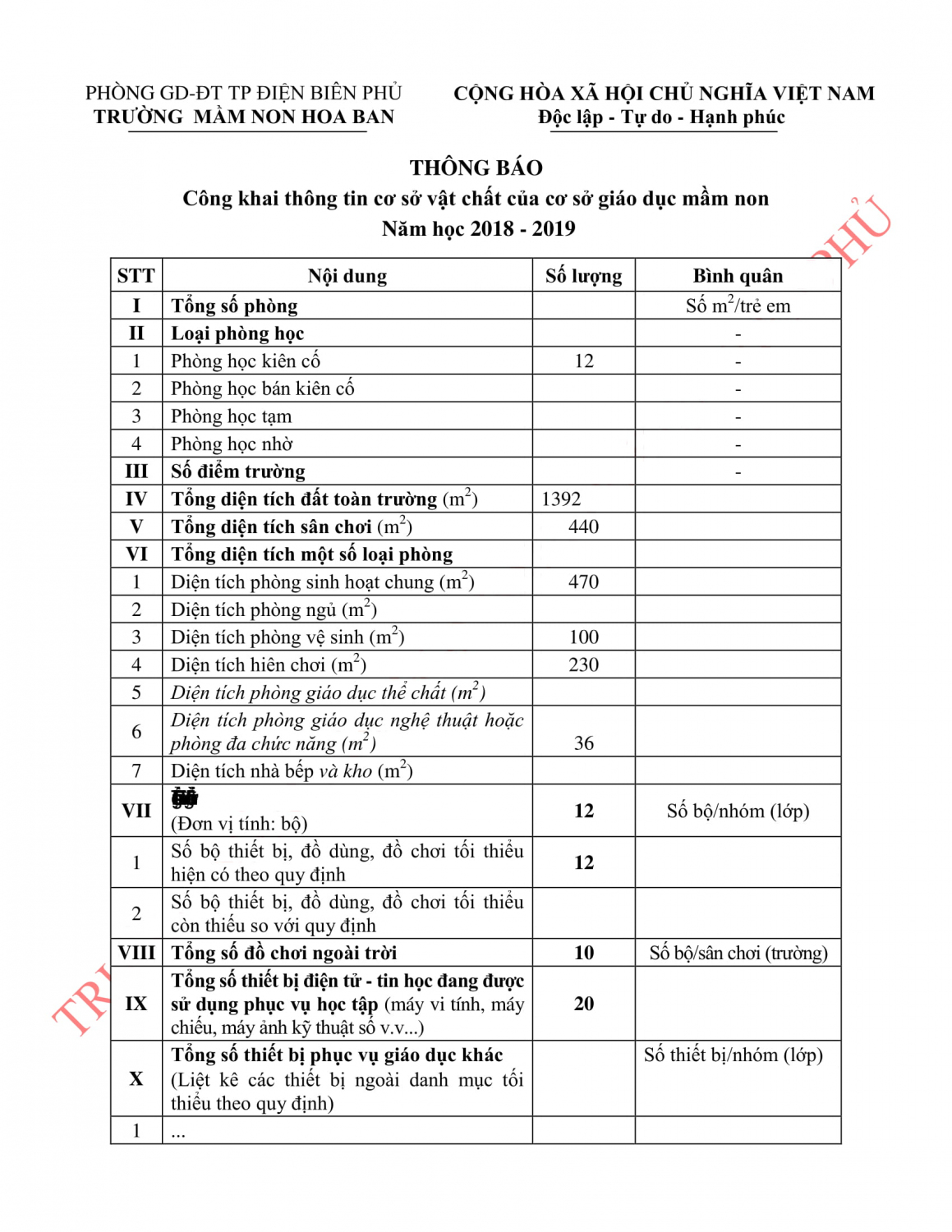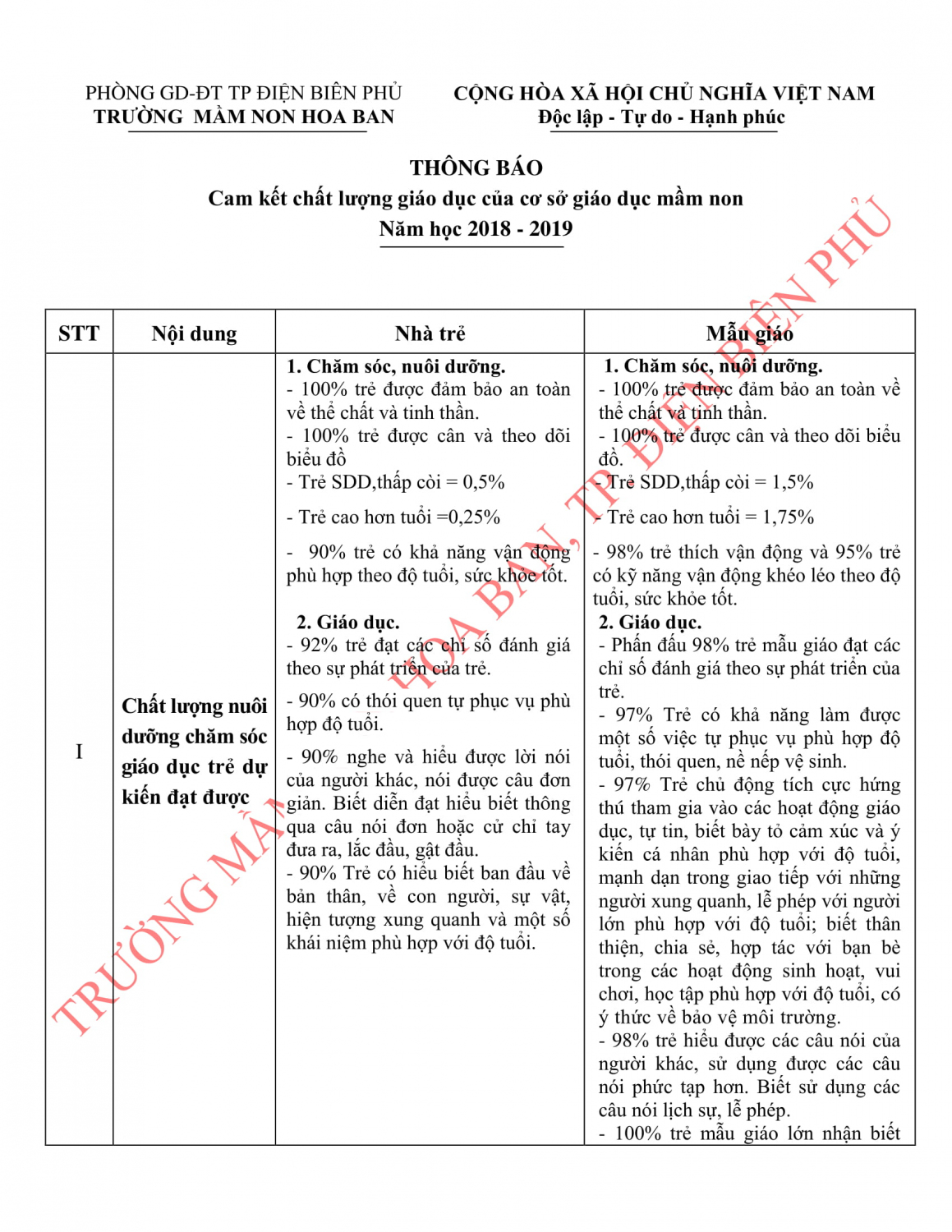 Trư ờng MN Hoa Ban công khai thông tịn giáo dục nhà trường