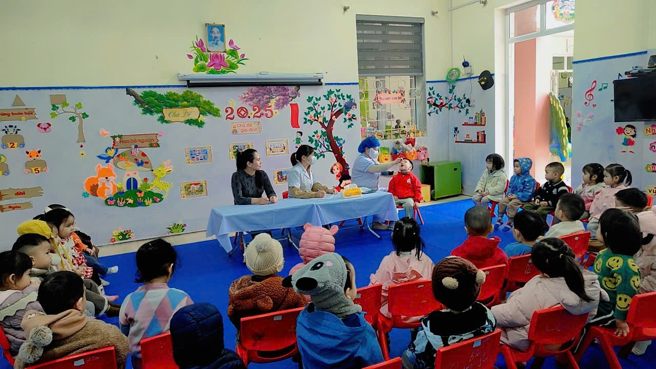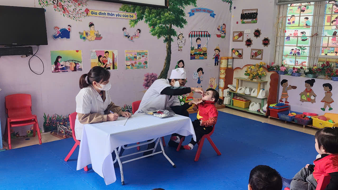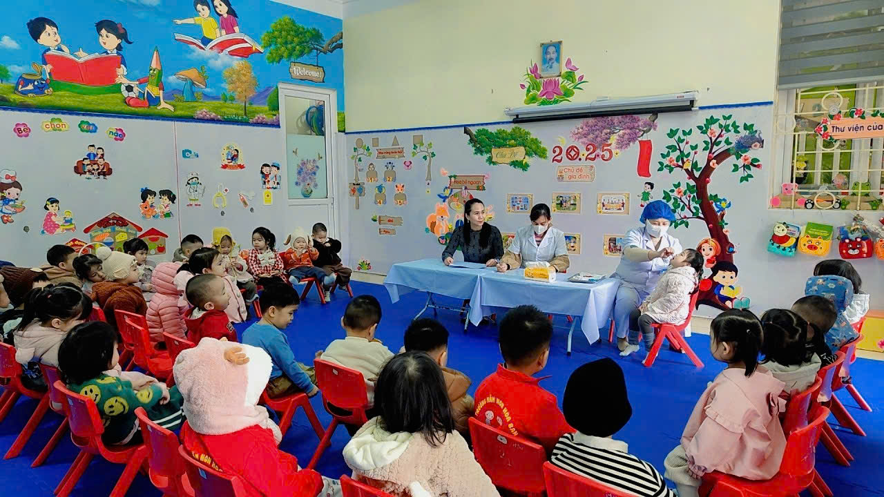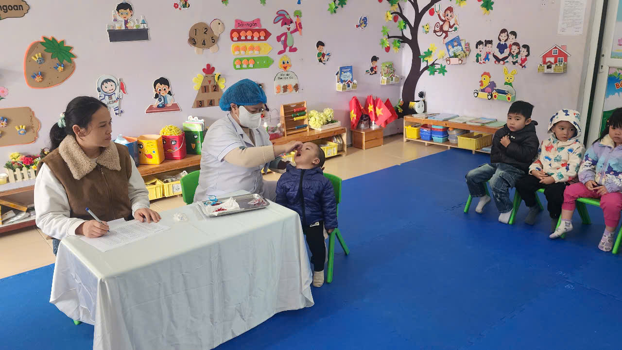 Phối hợp với trạm y tế phường Điện Biên Phủ cho trẻ uống Vitamin A và thuốc tẩy giun đợt II năm 2025