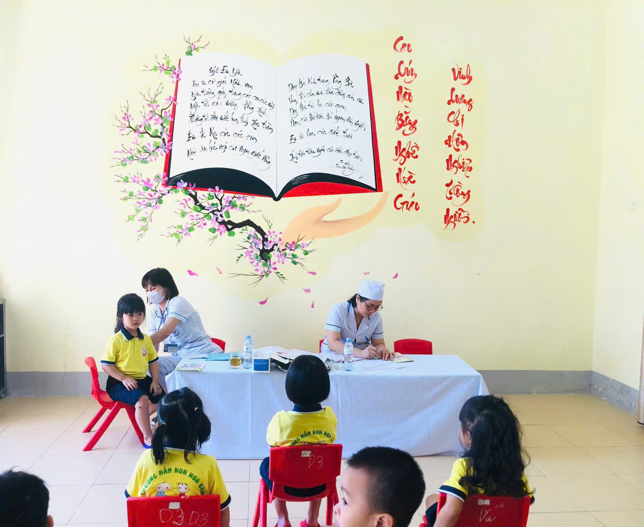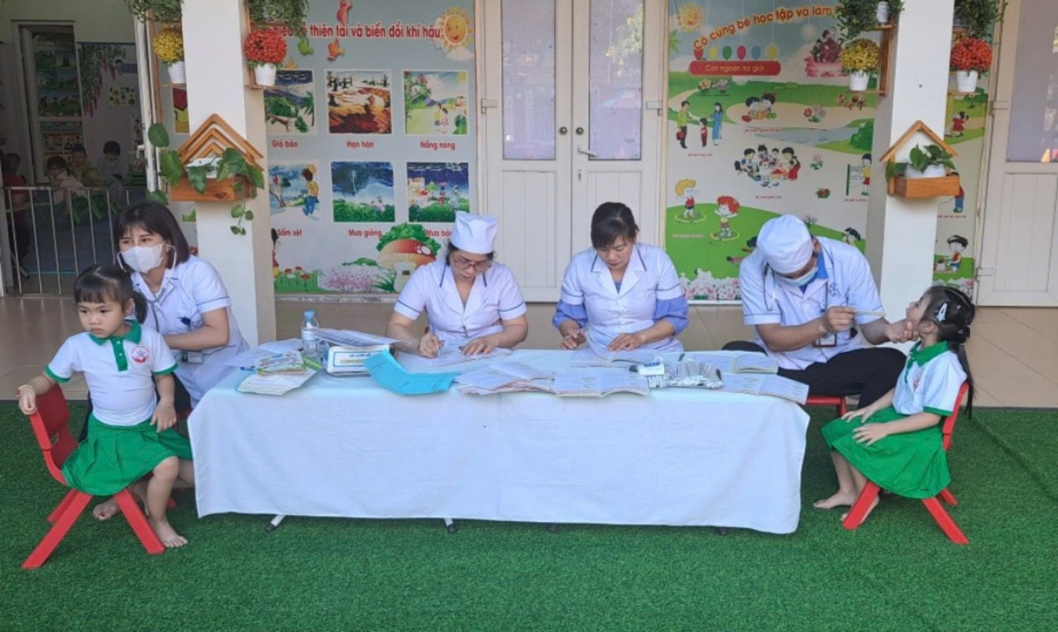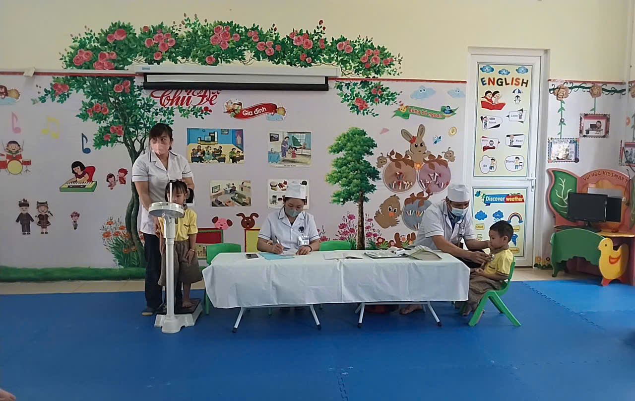 Trường Mầm non Hoa Ban phối hợp với trạm Y Tế phường Mường Thanh khám sức khỏe cho trẻ năm học 2024-2025