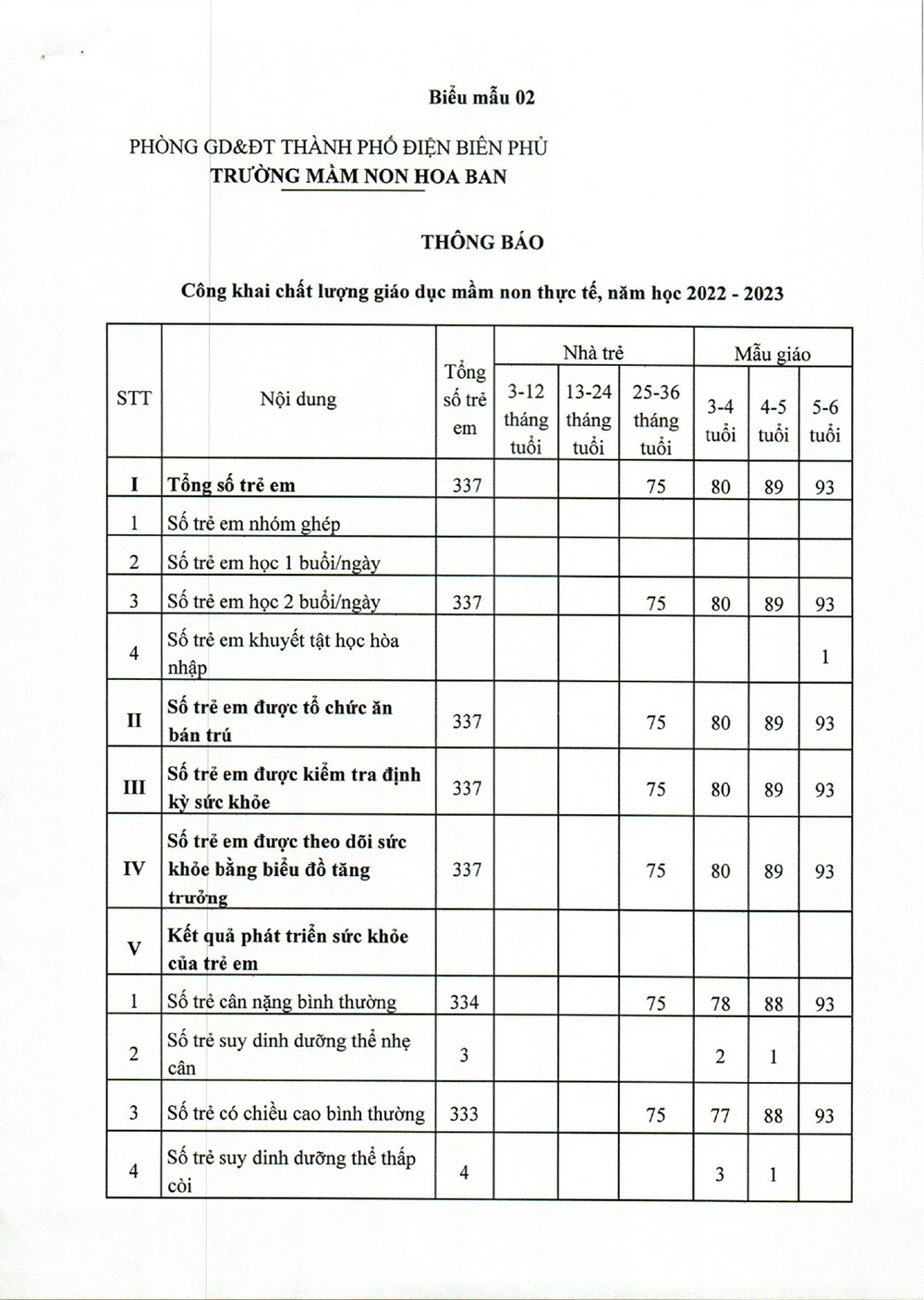 Trư ờng   MN Hoa Ban công  khai      thông tịn giáo dục nhà trường